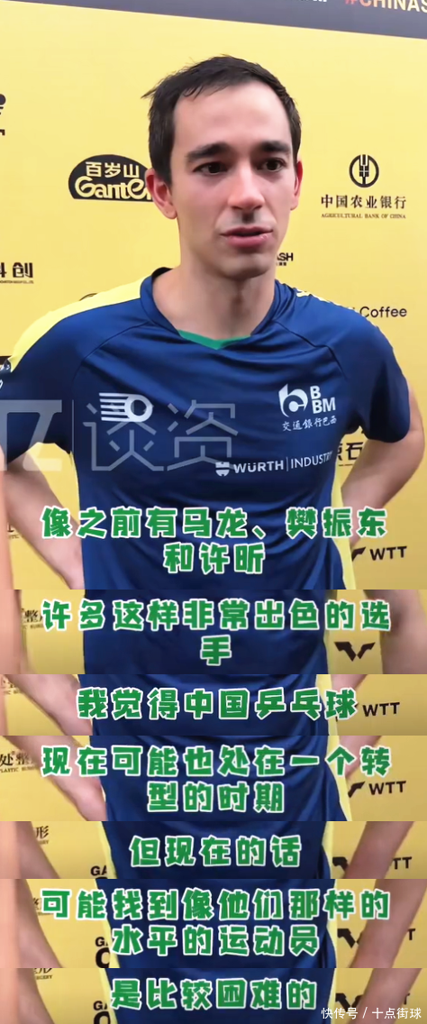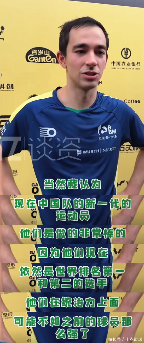 行为本年天下杯新科男单冠军和世乒赛亚军,雨果的驳斥有着很是的重量,他在9月29日领受中国媒体《谈资》采访时宣称:“当今天下乒乓球,群众的水平皆在提高,有好多相当庞大的选手出现,是以咱们必须要去尊重每一位敌手以及每一位畅通员,因为群众平日皆在相当缺乏的考试,群众每天皆在致力训练,我以为中国乒乓球当今处于一个转型期,像之前马龙、樊振东、许昕这么相当出色的选手,当今淌若要找到他们那样水平的畅通员,是比拟贵重的,天然我认为当今中国新一代畅通员,他们作念得也相当棒,因为他们当今依然是天下第一和第二的选手,只不外他们在总揽力上头,可能不如之前球员那么强了,但我也认为,这是由于来自其他国度实力健硕的选手出现,竞争变得热烈了许多。”