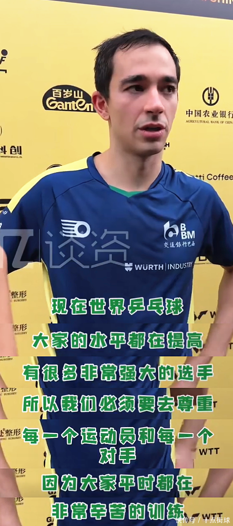 在刚适度的WTT中国大满贯男单首轮比赛中,巴西名将雨果·卡尔德拉诺以3:1逆转日本选手篠塚大登,得手晋级,然则赛后,这位天下名纪律三的选手莫得过多磋商我方的比赛,而是将话题转向了中国男队的近况,他的不雅点径直而明确:“中国乒乓球队正处在转型期,诚然新一代畅通员阐扬出色,连接保握天下名次前两位,但他们的总揽力已不如马龙、樊振东和许昕那样出色的选手!”这句话顷刻间焚烧了中国酬酢媒体